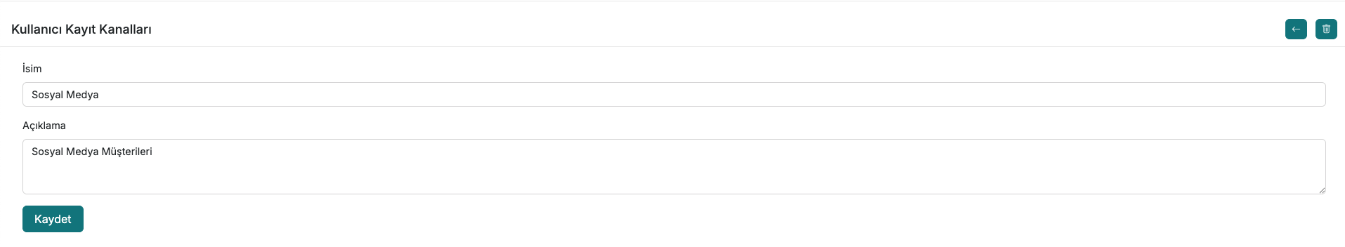 • Açıklama — Kanala ait kısa bir açıklama ekleyin. (Örn: Fuar Müşterileri, Sosyal Medya Müşterileri)