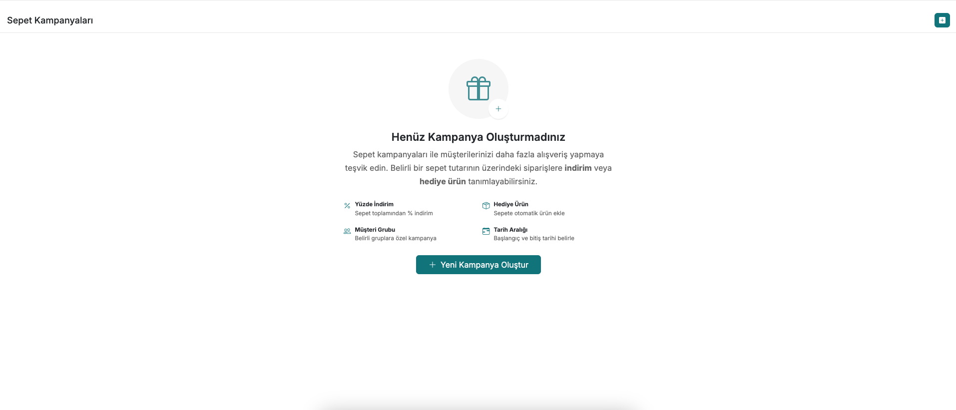 Sepet Kampanyaları, müşterilerinizi daha fazla alışveriş yapmaya teşvik etmek için kullanabileceğiniz güçlü bir pazarlama aracıdır. Belirli bir sepet tutarının üzerindeki siparişlere otomatik olarak yüzdesel indirim veya hediye ürün tanımlayabilir; ya da müşterilerinize özel kupon kodu oluşturabilirsiniz.