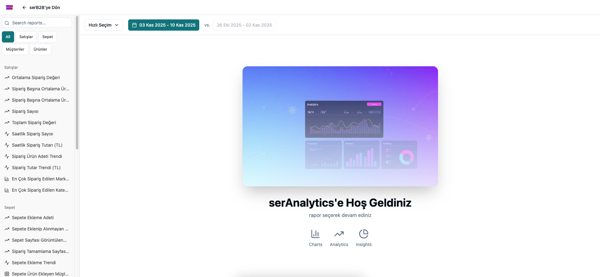 serAnalytics Dashboard, işletmenizin performansını kapsamlı bir şekilde izlemenizi sağlayan güçlü bir analiz aracıdır. Bu dokümantasyon, paneli etkin bir şekilde nasıl kullanacağınızı adım adım açıklayacaktır.